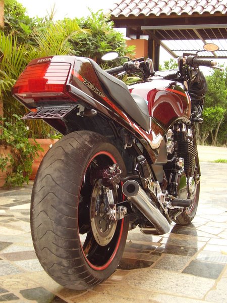 O Ismael me disse que usou a roda traseira da RF 900... tava usando um pneu 190/50 mas achou melhor o 180/55