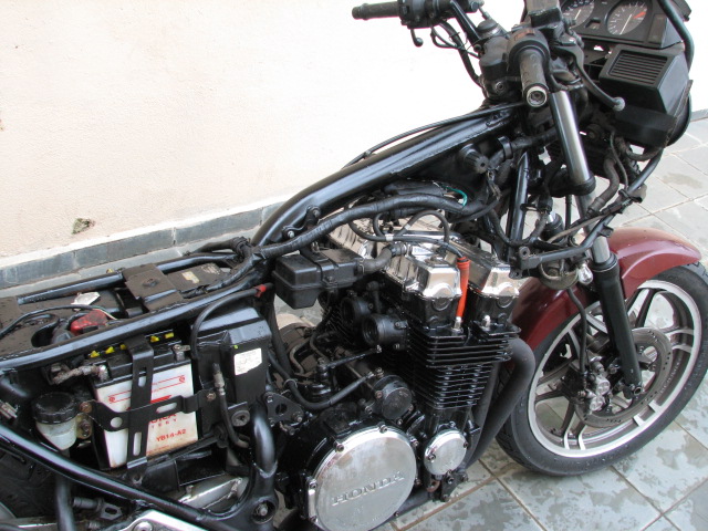 Parabens Uilson ! Belíssimo trabalho, digo, Galoterapia. Tres perguntinhas bestas: Para lavar a moto vc protegeu os coletores de admissão que estão abertos, né ?! Tanto no motor quanto na caixa do filtro de ar e também as mangueiras de gasolina e vácuo. Para tirar os carburadores vc afastou a caixa do filtro de ar ? Tem o manual de manutenção ??