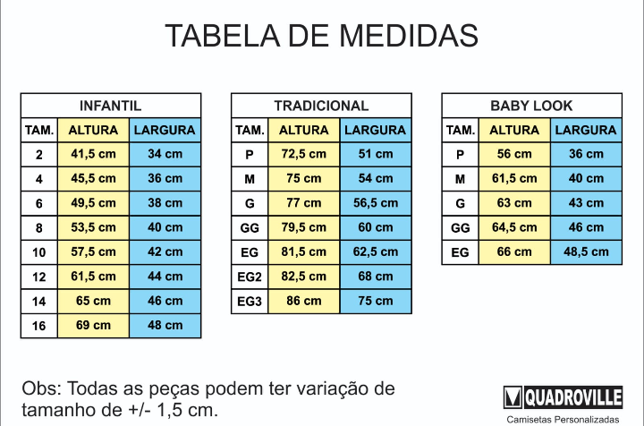 Tabela de tamanhos
