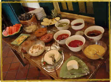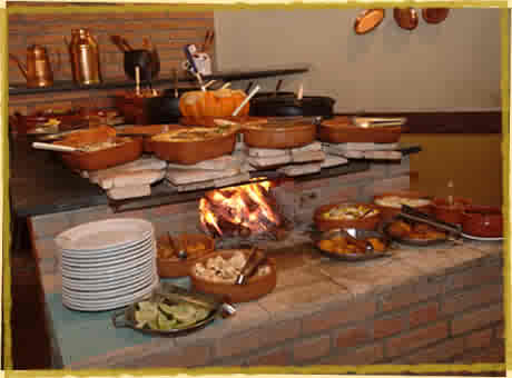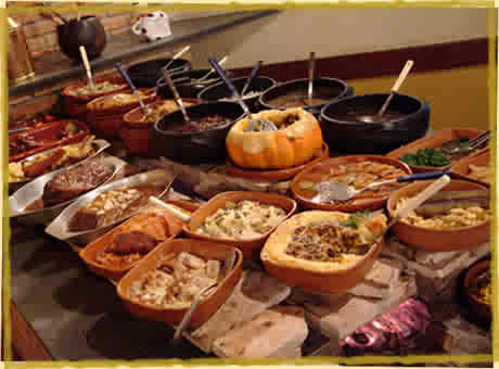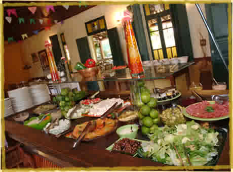 No bufê há mais de 30 pratos quentes, 20 tipos de saladas e molhos, além de diversos doces artesanais, tudo servido no sistema self-service, que possibilita a liberdade de se escolher o que e quanto comer, sem pagar nada a mais por isso.